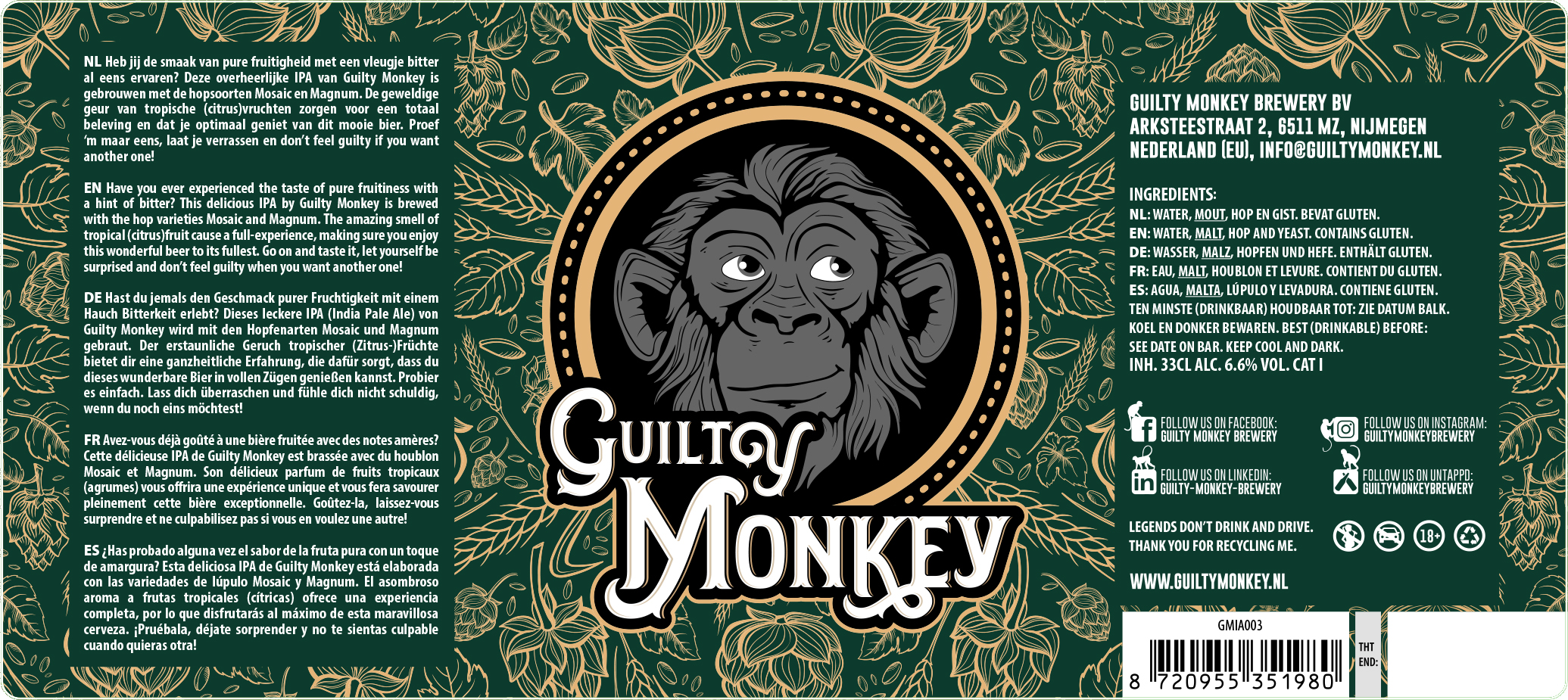 De IPA Aap staat bekend om de complexe en gelaagde smaken, met een balans tussen bitterheid, zoetheid en subtiele hints van kruiden en fruitigheid.